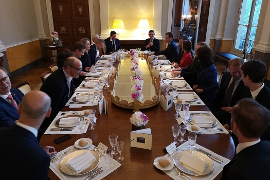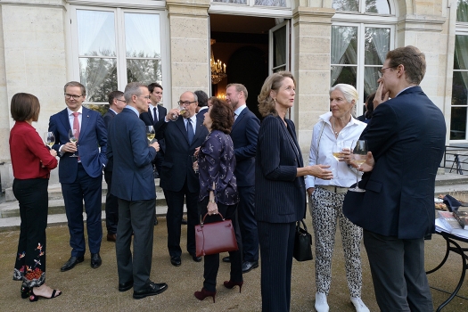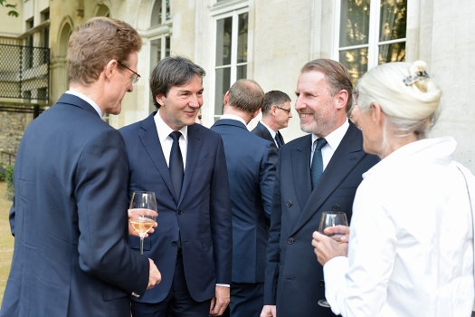 April 19, 2018: Paris. Presidents and CEOs from the High-end Cultural and Creative Industries accepted the cordial invitation from Dr. Nikolaus Meyer-Landrut, German Ambassador to France, and met at the Palais Beauharnais, the Ambassador’s residence in Paris. The motto of this roundtable meeting was “A Common Culture of Excellence” and included the following topics of mutual interest: Creativity (protection of intellectual property), Digital (artificial intelligence) and The Art of Craftsmanship (European excellence). A continuation of these discussions is planned for September 2018 at the Hotel Le Meurice, Paris. Participants who attended: Dr. Nikolaus Meyer-Landrut (German Ambassador), Thomas Lenk (German Embassy), Alexandre Arnault (Rimowa), Valentin von Arnim (Iris von Arnim), Dr. Jan Becker (Porsche Design), Ina Giscard d’Estaing (Louvre), Andreas Henke (Burmester), Fréderéric Jousset (Webhelp), Dr. Andreas Kaufmann (Leica), Florian Kohler (Gmund), Frank Marrenbach (Oetker Collection), Clemens Pflanz (Meisterkreis), Elisabeth Ponsolle des Portes (Comité Colbert), Diane de Selliers (Editions Diane de Selliers), Guillaume de Seynes (Hermès), Cyrill Vigneron (Cartier), Dr. Annette Winkler (Smart Automobile), Kim-Eva Wempe (Wempe).